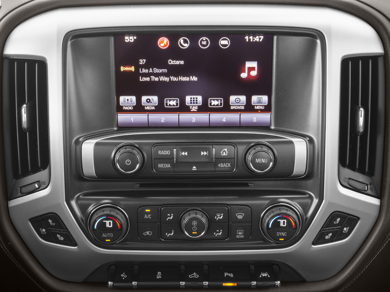 Enhanced Driver Alert Package: Lane Keep Assist; Forward Collision Alert; Low Speed Forward Automatic Braking; Ultrasonic Front and Rear Park Assist; IntelliBeam Automatic High Beam On/off Headlight. SLT Crew Cab Premium Plus Package. Preferred Equipment Group 4SA: LED Cargo Box Lighting; EZ Lift and Lower Tailgate; Chrome Door Handles; Rear 60/40 Folding Bench Seat (folds Up); Remote Vehicle Starter System; 5.3L EcoTec3 V8 Engine; Electric Rear Window Defogger; Theft Deterrent System (unauthorized Entry); Auxiliary External Transmission Oil Cooler; 4.2" Diagonal Color Display Driver Info Center; Trailering Equipment; 110-Volt AC Power Outlet; Thin Profile LED Fog Lamps; 150 Amp Alternator; Steering Wheel Audio Controls; Universal Home Remote; Color-Keyed Carpeting; Power Windows with Driver Express Up and Down; OnStar and GMC Connected Services Capable; Remote Keyless Entry; P265/70R17 AS BW Spare Tire; Single Slot CD/MP3 Player; 2-Speed Active Electronic Autotrac Transfer Case; 1st and 2nd Row Color-Keyed Carpeted Floor Mats; Deep-Tinted Glass; Dual-Zone Automatic Climate Control; Power Folding and Adjustable Heated Outside Mirrors; Chrome Mirror Caps; Leather Wrapped Steering Wheel with Cruise Controls; Manual Tilt/telescoping Steering Column; Driver and Front Passenger Illuminated Vanity Mirrors; Front Frame-Mounted Black Recovery Hooks; GMC 4G LTE; LED Tailamps with Signature; Auto-Dimming Inside Rearview Mirror; Power Adjustable Pedals; Rear Wheelhouse Liners; Heavy-Duty Rear Locking Differential; Chrome Bodyside Moldings. Power Sunroof. 20" X 9" Polished Aluminum Wheels. 6" Rectangular Chromed Tubular Assist Steps. Heated and Ventilated Front Bucket Seats. Front Full Feature Power Reclining Bucket Seats. Bose Speaker System. AM/FM/GMC Infotainment and Navigation Radio. Spray-On Pickup Box Bed Liner with GMC Logo. Quicksilver Metallic. Off-Road Suspension Package. Integrated Trailer Brake Controller. P275/55R20 AT BW Tires. All-Weather Floor Liner. Wheel Locks (set of 4). Console Insert Organizer Tray. **Equipment listed is based on original vehicle build and subject to change. Please confirm the accuracy of the included equipment by calling the dealer prior to purchase.**